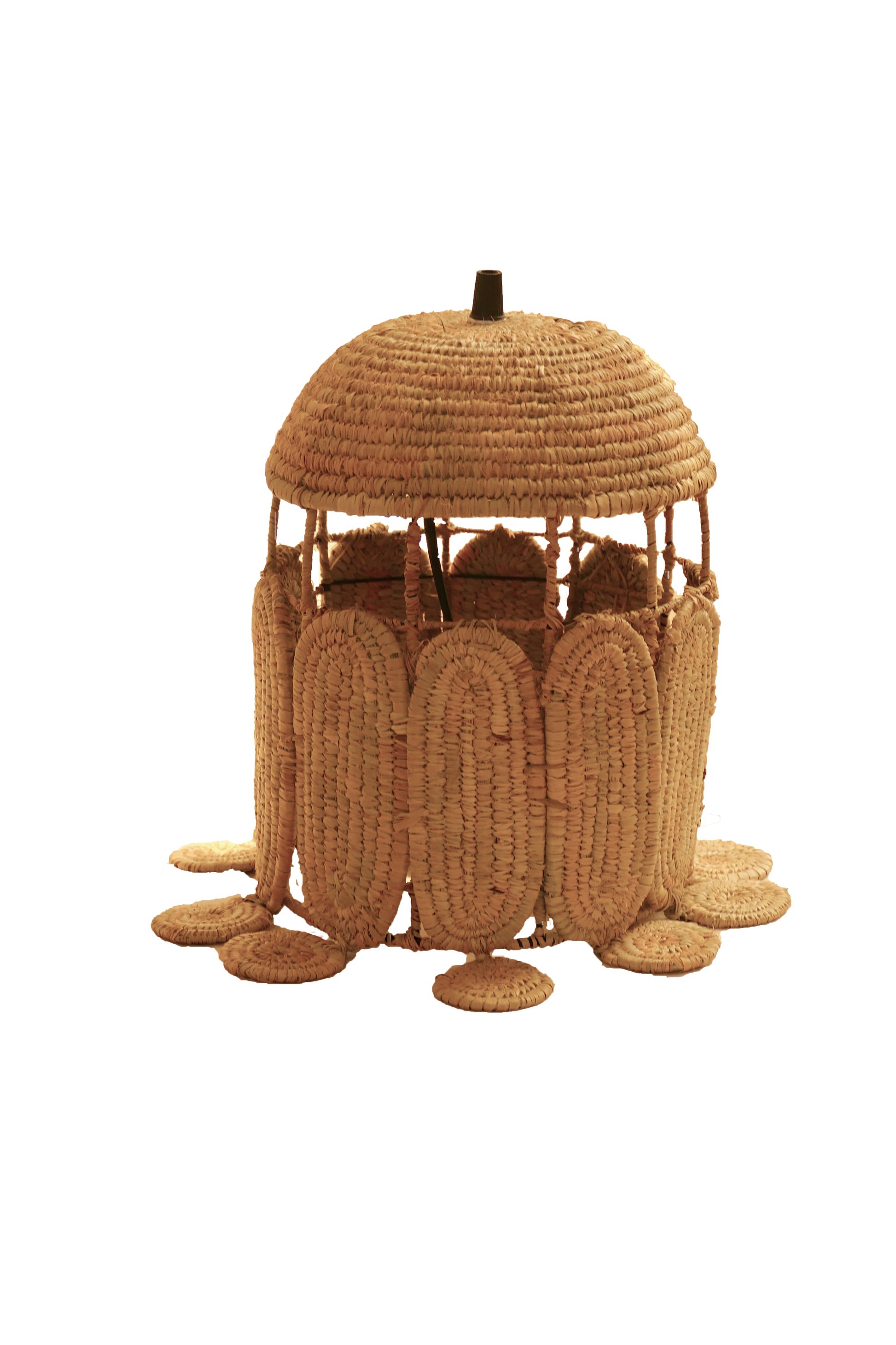 La lampe de table en alfa est une œuvre artisanale avec des spirales cousues à la main. Montée sur un support métallique pour stabilité et maintenance facile, elle ajoute une touche moderne. Cette lampe illumine avec élégance et apporte une ambiance chaleureuse et authentique à tout espace.