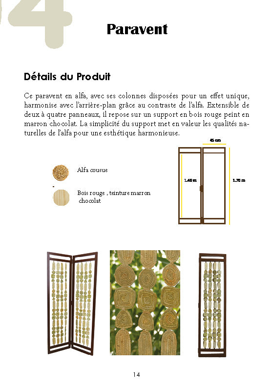 Tissé à partir de la fibre naturelle d’alfa, ce paravent vous transporte au cœur de l’Oriental marocain, berceau de cette matière rare et écologique.